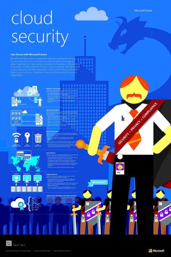 Cloud Security Posted on August 28, 2018 by avvenireadmin This infographic provides an overview of security, privacy, and compliance in Azure. View: Cloud Security
