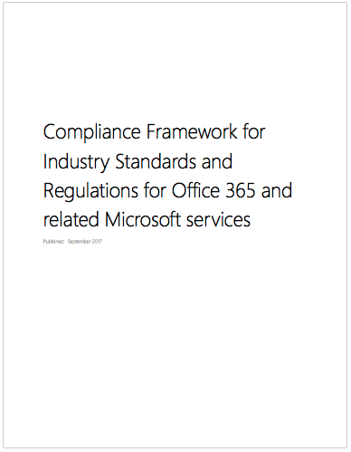To help customers with their compliance needs related to Office 365, we have created a compliance framework that is designed to give customers visibility into Office 365’s compliance with global, regional and industry standards, and details how customers can control Office 365 services based on compliance needs.