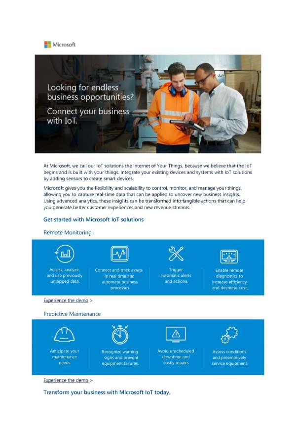View: Connect your business with IoT. Get started with Microsoft IoT!