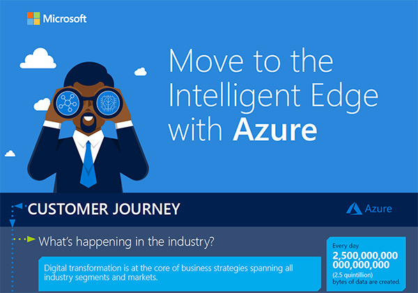 Billions of devices are connected to the internet, transmitting trillions of messages; if you aren’t doing something with that data, you are missing out. Use the Azure IoT Suite to connect your devices and scale with ease. Moving to the intelligent edge by utilizing all of your devices means you are closer to the source of your data, enabling better analysis and more insights. Improve efficiency with IoT.