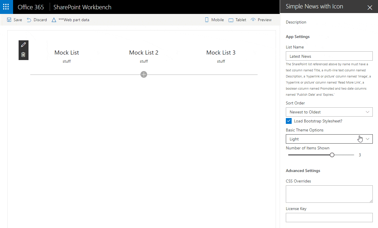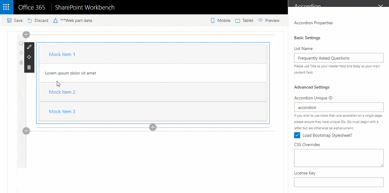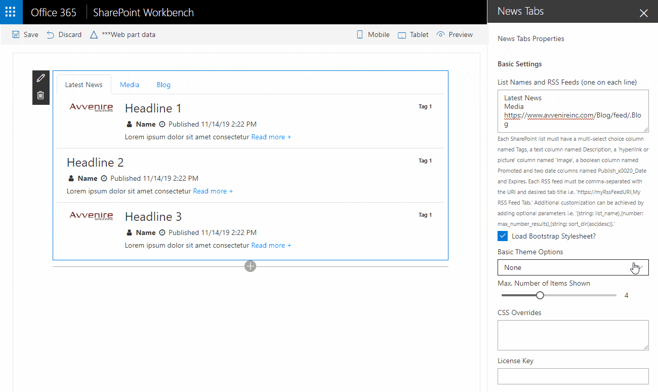 - Load Bootstrap Stylesheet This determines whether or not Bootstrap is loaded. You may want to turn this off if you’re underlying template or other web parts on the page are already using Bootstrap to avoid loading it more than once.
