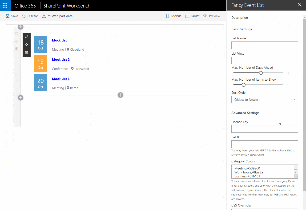- List ID If you would like to include recurring events, the List GUID can be entered here which is found in the URI of the list’s detail page and looks like, “d53c87d5-23f7-414a-9cc7-920ec806af95.”